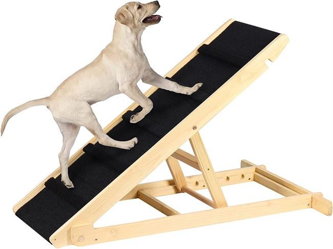 ·Rampa segura i robusta: fabricada amb un marc de fusta de primera qualitat i 5 tires de fusta de recanvi, aquesta escala per a mascotes ofereix un suport fort i manté una estabilitat suficient per oferir a la vostra mascota una experiència d'escalada segura. Redueix eficaçment la por i garanteix totalment la seguretat de la teva mascota quan s'utilitza.
